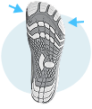 The copper-woven insole sits directly against your foot’s sweat-moisturized skin, allowing microscopic copper ions to be released on contact.