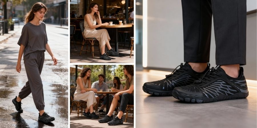 A true anatomical toe box follows the actual shape of human feet - wider at the toes than at the heel, with enough room for your toes to spread naturally with each step.