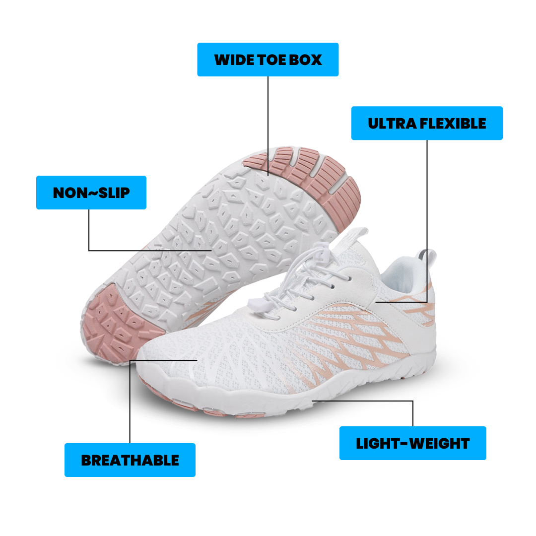 It also protects your feet from sharp stones, hot sand, and rough terrain. Thanks to upgraded, breathable, and water-resistant materials, your feet stay dry, cool, and comfortable in all conditions.
