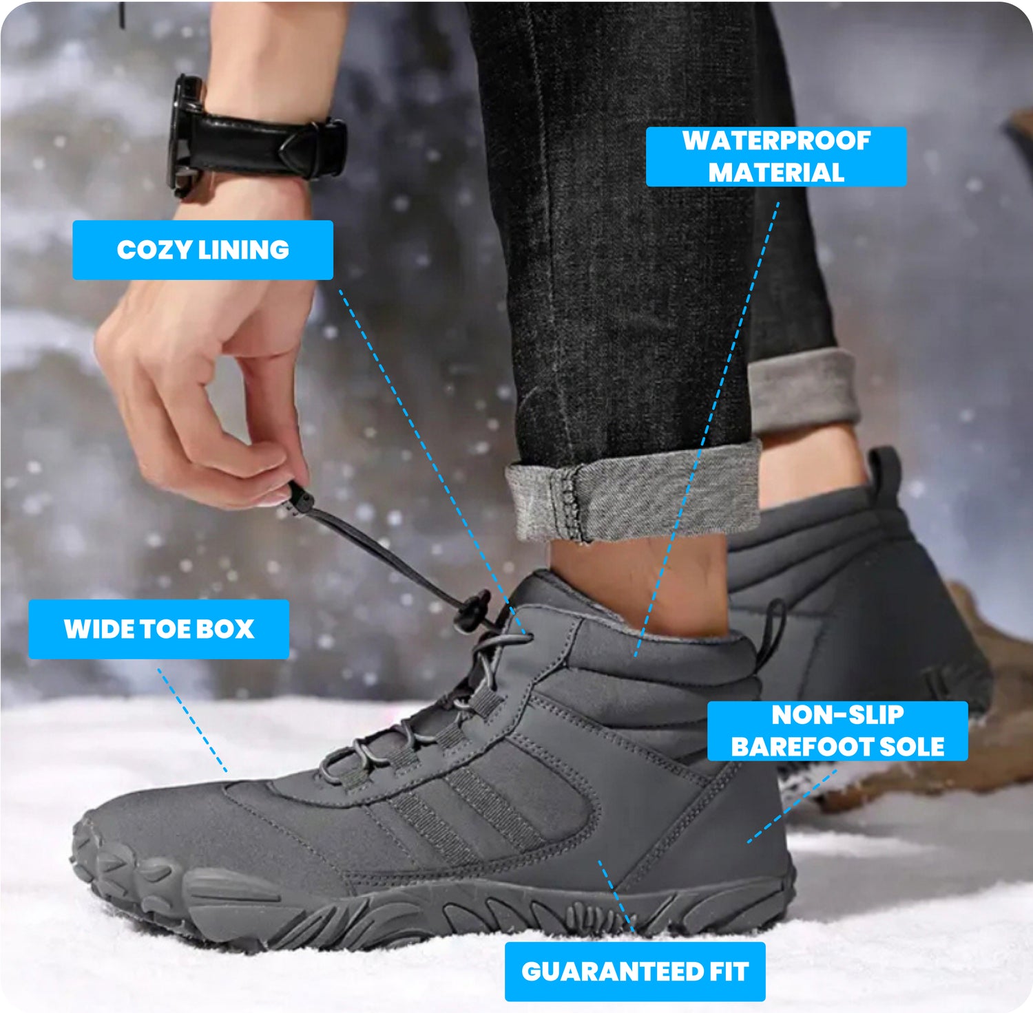 Bronoir Winter Barefoot Shoes flip that script. With a wide toe box, lightweight flexibility, and cozy warmth, they support a smoother, more natural stride, so you can walk longer with fewer aches and less end-of-day fatigue.